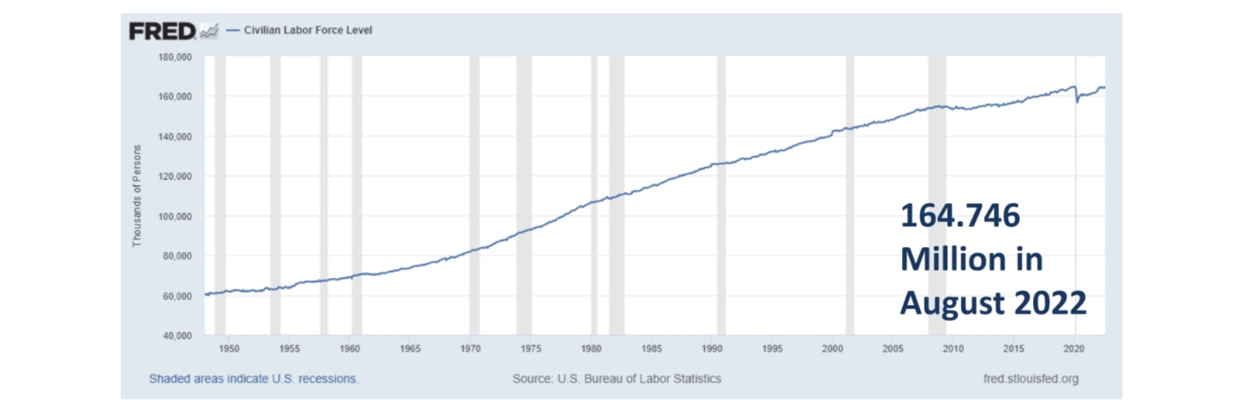 2. The U.S. Labor Force was at an all time high in August 2022