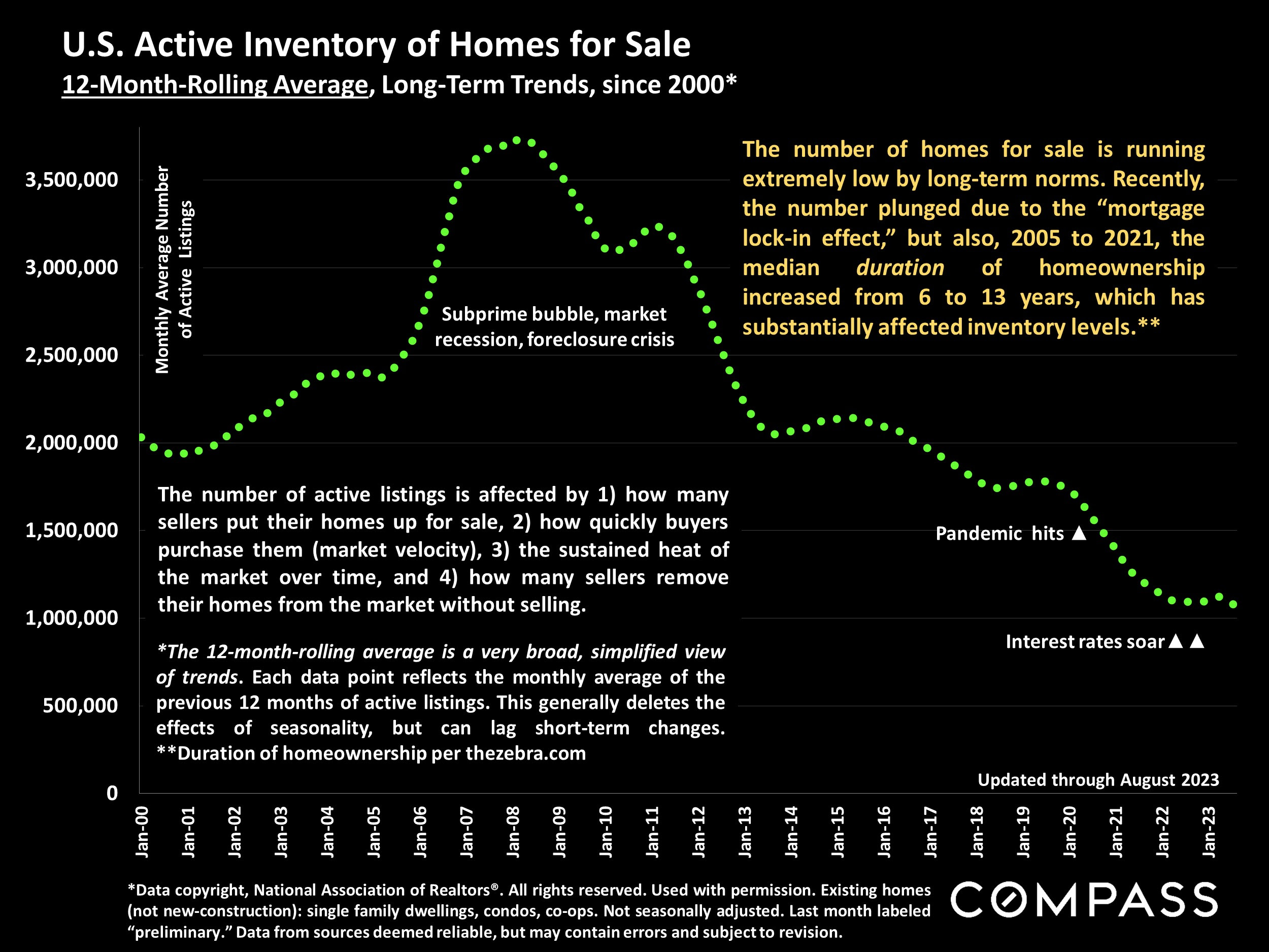 The chart below shows the US Existing Home Sales trends since 2000. As you can see, we are currently at the lowest level since the post 2008 recession.