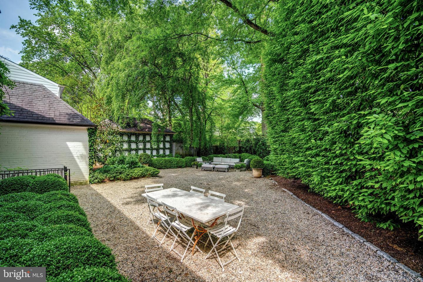 The second level of the home was remodeled in 2017 and features three bedrooms and two full baths all with Waterworks fixtures and finishes, including the primary suite with a spa-like ensuite. Fixed stairs lead to the third floor with two additional bedrooms, one with built-in bookshelves and an extra-deep closet. Extensive storage is accessible from the hall and one of the bedrooms. The walk-out lower level was completely remodeled in 2014 and now features a spacious paneled family room with nearly 8' ceilings, laundry room with marble countertops, loads of cabinetry, functional open shelving, large laundry sink, Miele washer/dryer and a wine refrigerator. Completing this level is a potential sixth bedroom and full bath, perfect for an in-law or au pair. The exquisite fenced-in gardens serve as an extension of the home highlighting mature trees with a pea gravel foundation and a cobblestone border. The garden is further accentuated by structured rows of Boxwoods, hydrangeas, peonies, mature perennials, square grids of mature English ivy and American wisteria, providing a true French-inspired oasis. The garden is the perfect space to enjoy morning coffee or afternoon drinks in the summer, while the outdoor high-end lighting and speaker system makes it an excellent space for evening entertaining. This spectacular home is complete with a detached single car garage with original carriage doors and off-street driveway parking. Located on a tree-lined street in Chevy Chase, DC, this home is walking distance to Rock Creek Park, Broad Branch Market, and is within close proximity to the restaurants and shops on Connecticut Avenue.