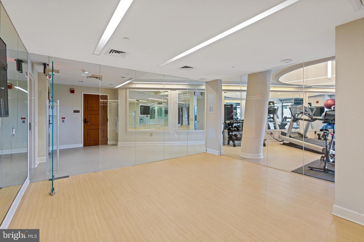 Situated in the heart of downtown Bethesda, this exquisite three bedroom, two and a half bath condo is located in the Darcy, a pet-friendly boutique building with countless amenities. Located on the west-facing side of Woodmont Avenue, this unit highlights stunning sunsets and views into downtown Bethesda. The open floor plan is flooded with natural light and boasts an inviting foyer that opens into a gorgeous living room with floor-to-ceiling windows, elaborate track lighting, a balcony, as well as, the formal dining area. The gourmet eat-in kitchen features high-end stainless steel appliances (including Bosch wall oven, convection microwave, range and hood, and dishwasher, uline wine fridge, Thermador fridge/ freezer), center island with seating, granite countertops, glass subway tiles, pantry cabinet, built in desk, space for a breakfast table, and access to an additional balcony with weather proof flooring . This unit has three bedrooms and two full bathrooms including the primary suite with dual walk-in closets by California Closet, and a spa-like ensuite bath complete with a double vanity, walk-in shower, and separate soaking tub. Completing this unit is a powder bathroom and a separate laundry room with ample storage, a sink, and a full size washer and dryer. This unit also conveys two garage parking spots and an additional storage unit.The Darcy is situated in a wonderful urban environment, just steps away from the Metro and downtown Bethesda, with shops, restaurants, grocery stores, and biking/walking trails, plus close proximity to downtown DC and Friendship Heights. Building amenities include an elegant lobby that was recently renovated and designed by Barry Dixon with 24-hour concierge, a club room with a fireplace, balcony, and catering kitchen, a business center, a private fitness center with a separate yoga studio, and two guest hospitality suites for residents.